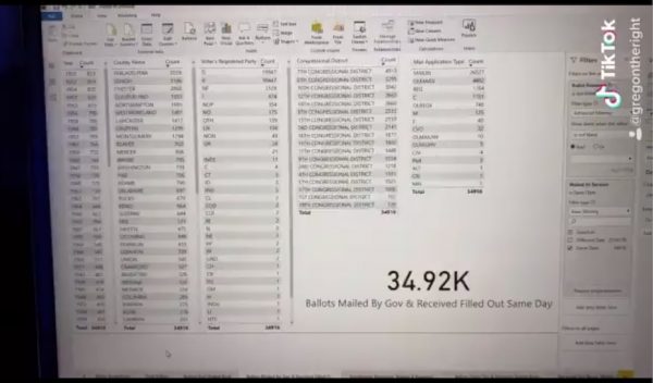 And lastly, I created a column to see if there were any ballots that were received through the mail, filled out before they were even mailed out and received by the government. There were 7,403 cases of that.