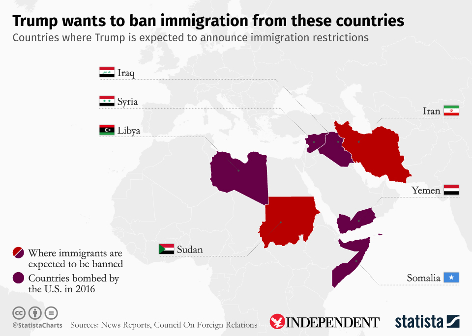 Out of the seven countries that were banned by President Trump last Friday, five were bombed by the Obama administration: Syria, Iraq, Yemen, Libya and Somalia.
