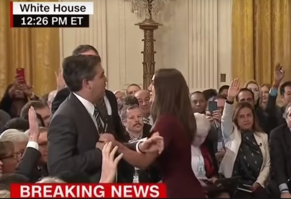 Jim Acosta, Jimmy Kimmel an the entire lying left-wing media are now claiming Jim Acosta never touched the White House intern. This video grab, they say, is a complete fake and didn’t happen: