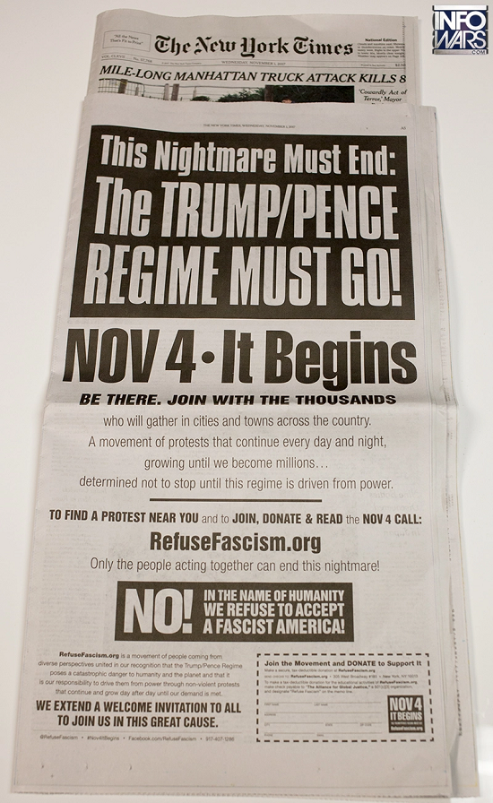 The following newspaper ad, published by the New York Times, typifies the level of hysteria and lawlessness now being parroted by the indoctrinated Left. It also proves how the New York Times is complicit in pushing an illegal, violent coup attempt against Trump and the tens of million of supporters who voted him into office: