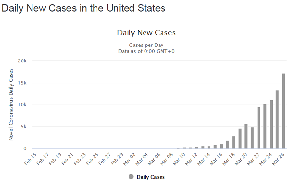 This shows that each day in America, there are over 15,000 new confirmed infections. That’s per day.