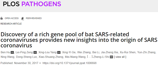 Results of the research were published in November 2017 under the heading: ‘Discovery of a rich gene pool of bat SARS-related coronaviruses provides new insights into the origin of SARS coronavirus.’