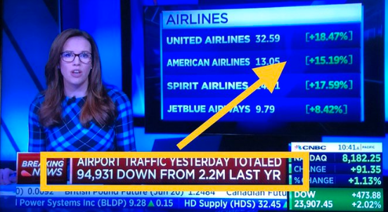 Here’s another example: As airport traffic is down 96% from last year, Airline stocks are booming thanks to bailouts and fiat currency liquidity pumping by the Fed: