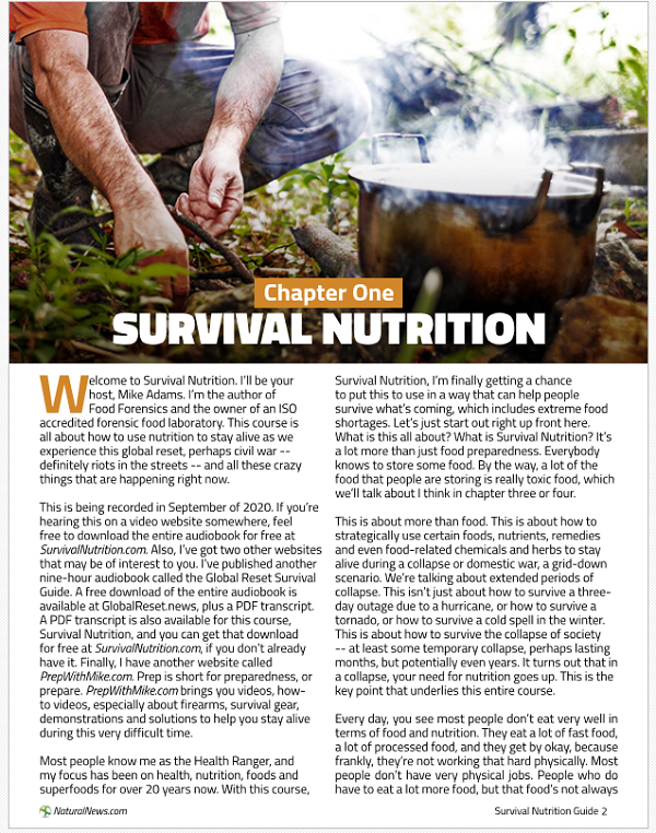 This free audio book, authored by Mike Adams (that’s me), teaches you how to strategically use food, nutrients, herbs and chemical compounds to stay alive, fight infections and greatly enhance your nutritional intake during times of collapse or civil war.