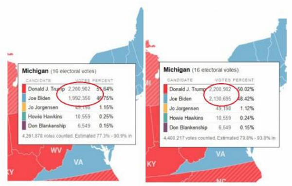 And in Michigan, the vote magically jumped up 138,000 for Biden in the middle of the night, without a single new vote for Trump. It’s rigged!