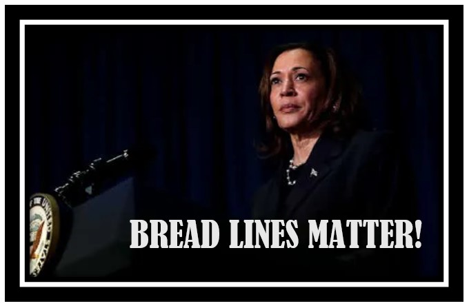For each Kamala food token, you receive one loaf of heavily processed, artificially preserved bleached bread, plus two slabs of Bill Gates’ lab-concocted GMO-Franken meat funk. Also, if you turn in any neighbors who own guns, you get a bonus food-stuff token for a gallon of federally subsidized corn syrup (for the kids).